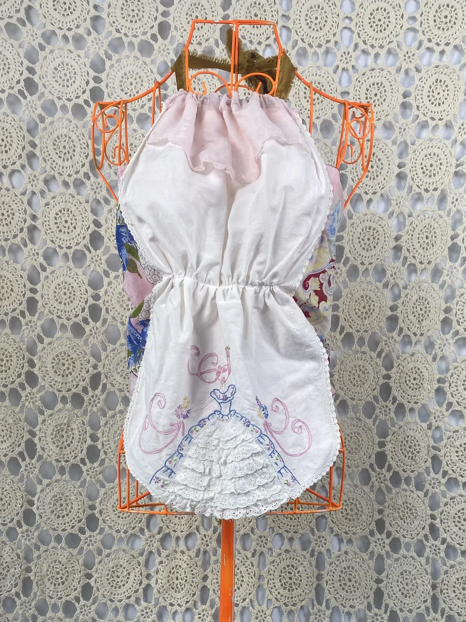 Shop › the embroidered girl Image 1 of 3 Image 2 of 3 Image 3 of 3 the embroidered girl $48.00 a vintage table runner and hankies Re-deFind into a tie back, tie neck halter top.fit size XS to medium Add To Cart Added! a vintage table runner and hankies Re-deFind into a tie back, tie neck halter top.fit size XS to medium